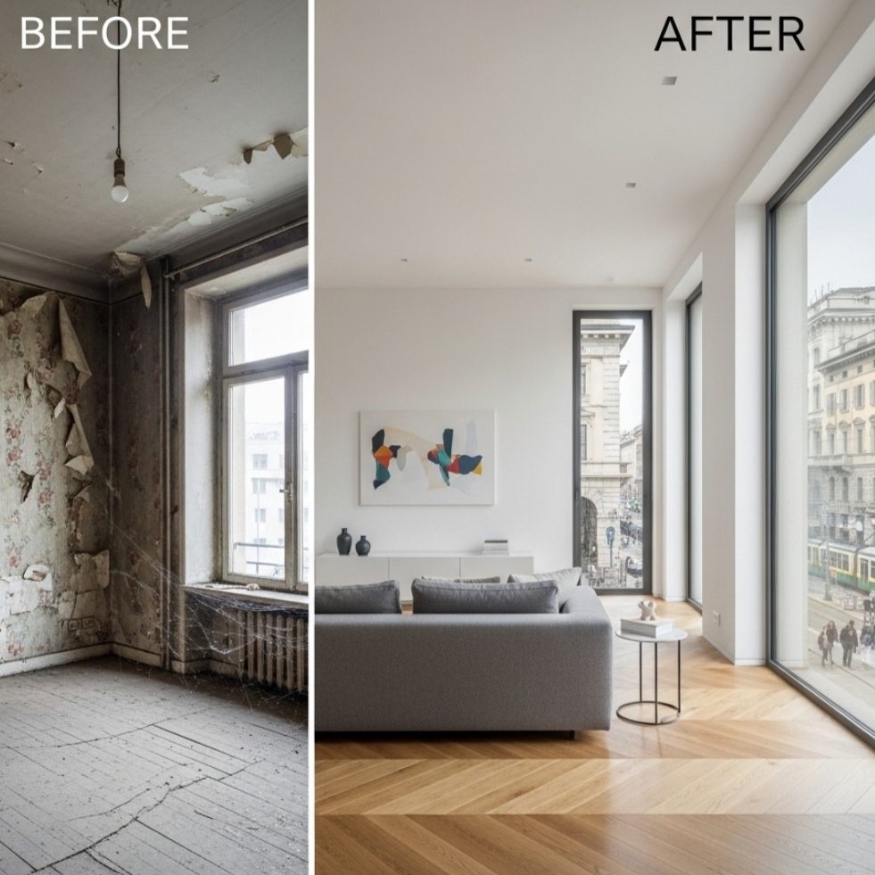 Investi nel futuro del tuo patrimonio immobiliare. Un progetto di ristrutturazione totale eseguito professionalmente può incrementare drasticamente il valore di mercato della tua proprietà. Forniamo analisi di fattibilità, progettazione architettonica di alto livello e una gestione del cantiere meticolosa. Ottimizza il tuo investimento con noi.